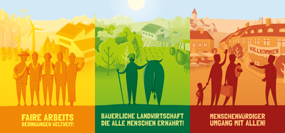 Am 13. Mai, dem Weltladentag, machen über 400 Weltläden und Aktionsgruppen bundesweit auf die Visionen und Forderungen aufmerksam. Ziel der Kampagne ist, dass bis zur Bundestagswahl am 24. September möglichst viele Kandidat/-innen davon erfahren. Zu jeder Vision wurden jeweils drei politische Forderungen formuliert: Sie sollen zeigen, welche politischen Maßnahmen notwendig sind, um der Verwirklichung der Visionen einen großen Schritt näher zu kommen. Dazu gehören auch Forderungen, die wir im Rahmen der Make Fruit Fair! Kampagne vorantreiben wie zum Beispiel eine verbindliche menschenrechtliche Sorgfaltspflicht für deutsche Unternehmen, die entlang ihrer gesamten Lieferkette per Gesetz festgeschrieben werden muss. Bei Verletzung der menschenrechtlichen Sorgfaltspflicht muss Betroffenen aus dem Ausland ermöglicht werden, deutsche Unternehmen vor deutschen Gerichten zu verklagen. Die Wettbewerbspolitik muss reformiert werden. Sie muss auch das Wohl von Produzent/innen und zukünftigen Konsument/innen im Blick haben. Die Fusionskontrolle muss verschärft werden, um der übermäßigen Nachfragemacht und der erhöhten Marktkonzentration im Einzelhandel zu begegnen.